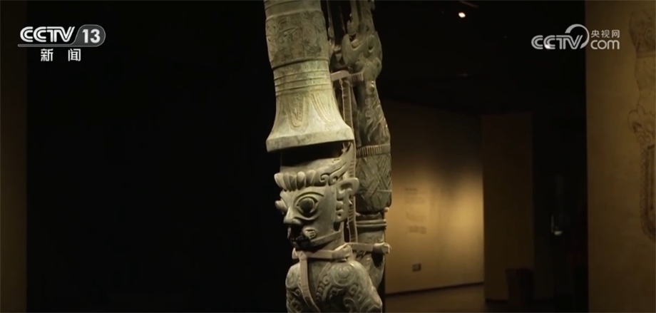 北京大學(xué)考古文博學(xué)院副教授 趙昊:為什么我們不直接把這件器蓋放在這個(gè)尊之上,或者包括那個(gè)持龍人像放在器蓋之上,這涉及到一個(gè)文物安全的問題。因?yàn)橄鄬?duì)來說這些器物本體已經(jīng)有一些變形,第二就是它長期埋在地下,本體已經(jīng)變得比較疏松了,如果我們將它原來整體復(fù)原蓋在一起,重量會(huì)很大,可能對(duì)于下面的支撐壓迫比較重。