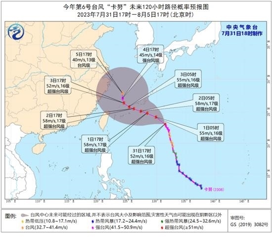 8月1日開始,受副熱帶高壓變?nèi)?、形態(tài)改變的影響,“卡努”的引導氣流將變得不太清晰,其移速也將減緩。最新預報顯示,“卡努”將以每小時15-20公里的速度向西北方向移動,強度還將有所增強,8月2日夜間移入東海,逐漸轉向偏北方向移動,移速明顯減慢。