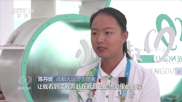 陳丹妮:“參與志愿服務(wù)的每一天我沒有覺得特別累,這是成都大運(yùn)會帶給我的一次體驗(yàn),讓我看到了我奔赴在自己的熱愛里的時(shí)候,那種熱愛帶給我的力量,看到他們的笑容,這一刻所有人都會覺得所有的辛苦都很值得。”