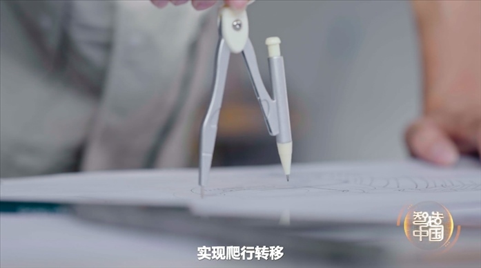 研發(fā)團隊一籌莫展的時候,一位工程師用圓規(guī)畫圖,猛然受到啟發(fā)。就像圓規(guī)一樣,他們也讓大型機械臂的兩只手當“腳”,互為支點,交替切換向前移動,實現(xiàn)爬行轉(zhuǎn)移。