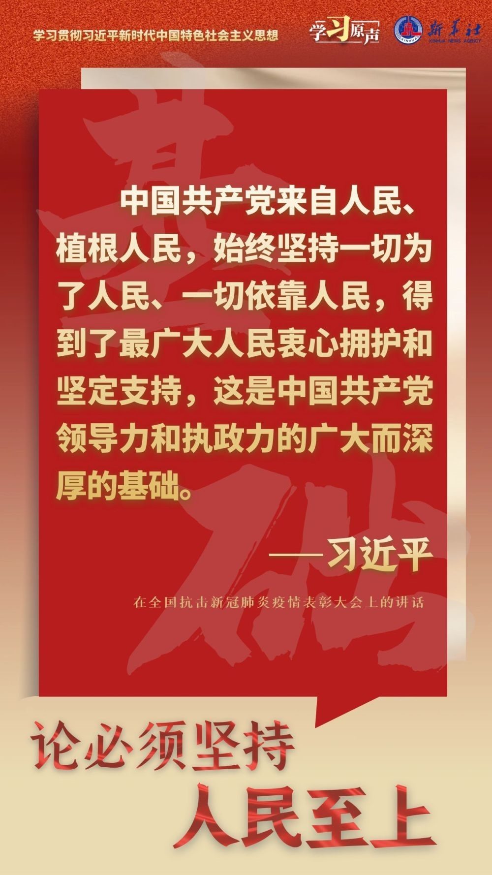 一切為了人民、一切依靠人民,始終把人民放在心中最高位置,是新時代黨治國理政的鮮明底色。習近平總書記指出,前進道路上,無論是風高浪急還是驚濤駭浪,人民永遠是我們最堅實的依托、最強大的底氣。我們要始終與人民風雨同舟、與人民心心相印,想人民之所想,行人民之所囑,不斷把人民對美好生活的向往變?yōu)楝F(xiàn)實。