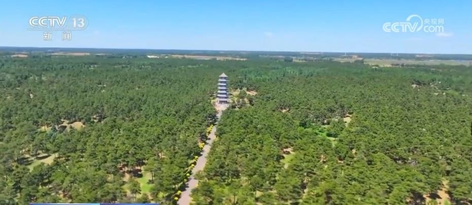 如今,在曾經(jīng)風沙最嚴重的彰武縣章古臺鎮(zhèn),記者登上瞭望塔遠眺,映入眼簾的是綠意盎然綿延不斷的萬畝“林?!币恢变佌沟教爝叀,F(xiàn)在,這片防護林帶猶如一條綠色的屏障,有效阻隔了科爾沁沙地南侵,形成了“以樹擋沙”的治沙模式,也造就了大漠“林?!钡钠嬗^。