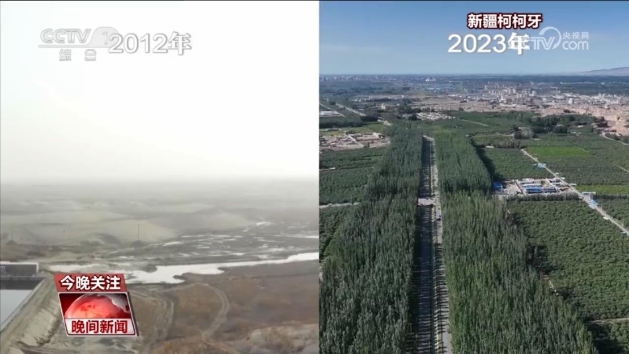 新疆阿克蘇地區(qū)的柯柯牙曾經是南疆風沙策源地之一。30年來,面對柯柯牙缺水和土壤鹽堿含量高的情況,當地系統推進山水林田湖草沙一體化保護和系統治理,柯柯牙綠化工程造林共計120.26萬畝,累計栽植樹木1400萬株,荒漠變?yōu)榱趾#罱K在貧瘠的戈壁荒漠中,造就了一道“綠色長城”。