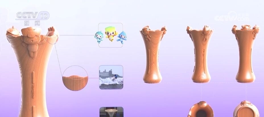 頒獎托盤設計靈感則來源于微風中波動的西湖水面,結合本屆亞運會核心圖形“潤澤”中的飄逸絲帶意向,整體給人流動之感。