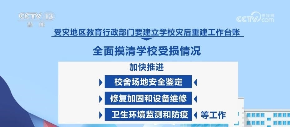 教育部強(qiáng)調(diào),要慎終如始做好災(zāi)后恢復(fù)重建各項工作,穩(wěn)慎做好受災(zāi)師生安置慰問、補(bǔ)償救助等工作。受災(zāi)地區(qū)教育行政部門要建立學(xué)校災(zāi)后重建工作臺賬,全面摸清學(xué)校受損情況,加快推進(jìn)校舍場地安全鑒定、修復(fù)加固和設(shè)備維修、衛(wèi)生環(huán)境監(jiān)測和防疫等工作。確實在開學(xué)前不能完成災(zāi)后重建的,要立足實際采取臨時轉(zhuǎn)移就學(xué)等舉措,全力保障正常開學(xué)。各地各校要一體推進(jìn)防汛救災(zāi)和校園安全治理,健全校園安全常規(guī)檢查機(jī)制,持續(xù)深入排查整治風(fēng)險隱患,有效防范原發(fā)、誘發(fā)性自然災(zāi)害和次生安全風(fēng)險。