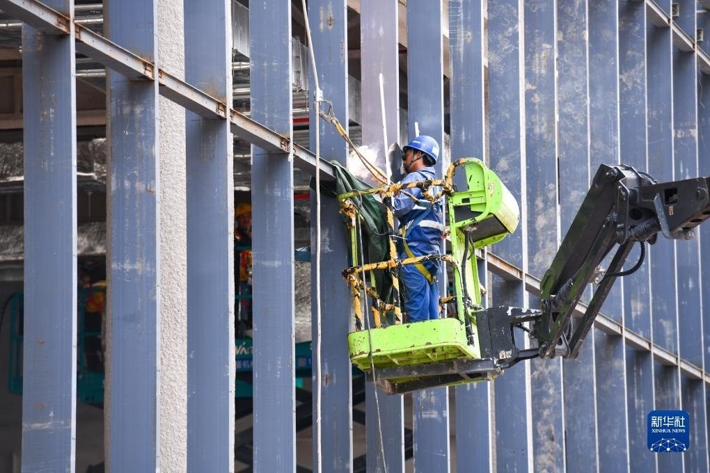 8月30日,在河套深港科技創(chuàng)新合作區(qū)首批重點項目河套壹號(原名:深港科創(chuàng)綜合服務(wù)中心)建設(shè)現(xiàn)場,中建深裝的工人進行幕墻鋼龍骨焊接作業(yè)。新華社記者 梁旭 攝