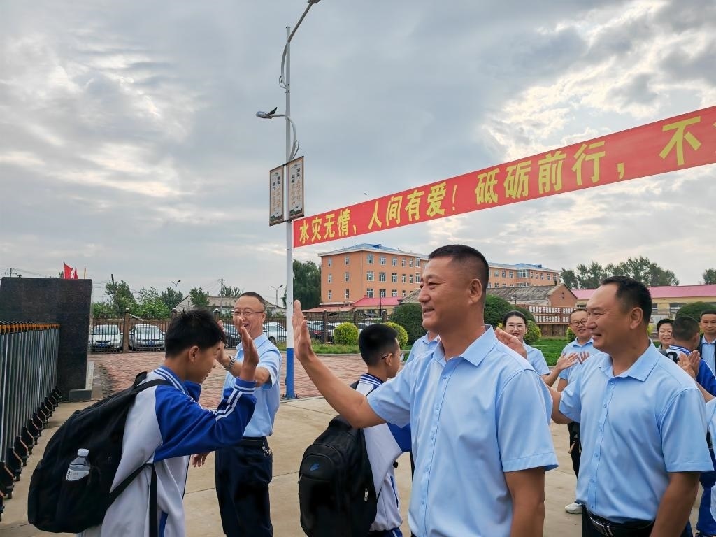 一張張笑臉、一個個擁抱……9月1日,在河北、吉林、黑龍江等地遭受洪災的學校,經(jīng)過清淤消殺、借址開學、維修校園,學生重返校園,以嶄新的面貌迎接新學期。