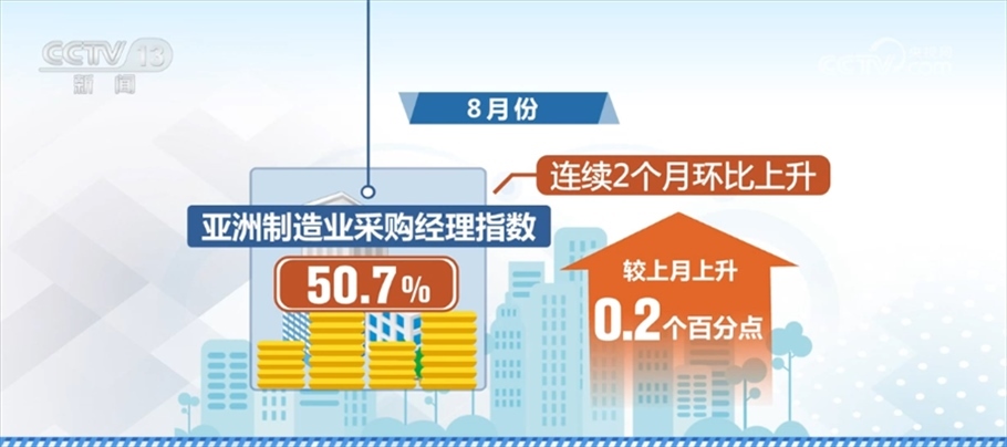 8月份,亞洲制造業(yè)采購經(jīng)理指數(shù)為50.7%,較上月上升0.2個百分點,連續(xù)2個月環(huán)比上升,顯示亞洲制造業(yè)延續(xù)平穩(wěn)增長趨勢。從主要國家看,中國制造業(yè)采購經(jīng)理指數(shù)連續(xù)三個月上升,向好回升勢頭進(jìn)一步鞏固,中國制造業(yè)呈現(xiàn)持續(xù)穩(wěn)定恢復(fù)趨勢,為亞洲制造業(yè)的平穩(wěn)增長提供重要支撐。