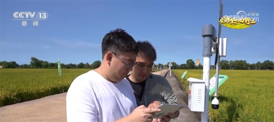 閆家崗農(nóng)場黨委書記 張雅南:咱們現(xiàn)在手里拿的這塊屏,就相當(dāng)于在我們田間地頭建設(shè)了一個農(nóng)業(yè)的智慧大腦。您看我手邊指的這一個,下面就是視覺傳感器,它是做什么用的?它就是在水稻的不同生育期負責(zé)拍攝水稻生長的狀態(tài)。原來人工巡田,現(xiàn)在通過智慧大腦來巡田、來決策,所以更科學(xué)、更高效。