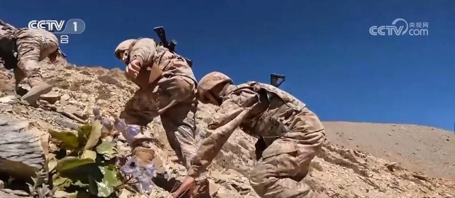一路走走停停艱難前行。巡邏車行駛至距離點(diǎn)位6公里處停了下來,由于道路塌陷,官兵們只好下車改為徒步巡邏。行走在坡度近70度的陡峭山路上,路面全是碎石,加上海拔不斷攀升,這對巡邏官兵的體能是極大的挑戰(zhàn)。經(jīng)過近4個(gè)小時(shí)的艱難攀爬,巡邏分隊(duì)終于到達(dá)了點(diǎn)位。