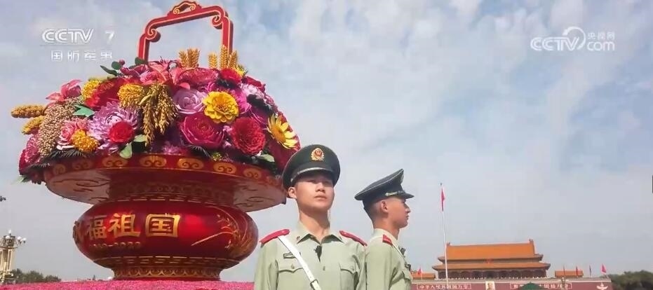 在北京,天安門廣場內(nèi)祝福祖國的巨型花籃吸引著眾多游客前來觀賞拍攝。武警官兵在完成好巡邏執(zhí)勤任務(wù)的同時(shí),協(xié)助工作人員進(jìn)行游客疏導(dǎo)也成為一項(xiàng)重要的工作。