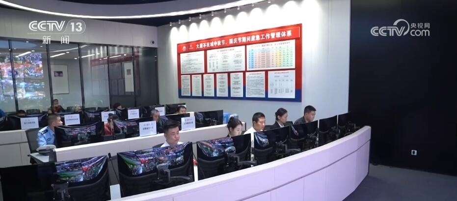 在大唐不夜城安保中心的指揮大廳里,記者看到,包括應(yīng)急、城管、公安、交通等十余個單位都派出人員在這里聯(lián)合辦公,方便隨時調(diào)度。安保指揮中心的大屏幕上,實時顯示著關(guān)鍵點位的具體情況等多種信息。