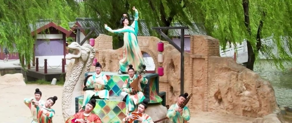 于歷史深處探尋,中華文明綿延傳承,始終在兼收并蓄中煥發(fā)蓬勃生機與活力。2023年,大唐芙蓉園推出一組“壁畫再現(xiàn)”演藝,盛唐舞樂,回響穿越千年。