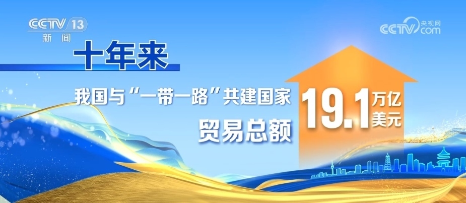 “高”是指貿(mào)易額。十年來,我國與“一帶一路”共建國家的進(jìn)出口貿(mào)易快速增長,貿(mào)易總額達(dá)到了19.1萬億美元。