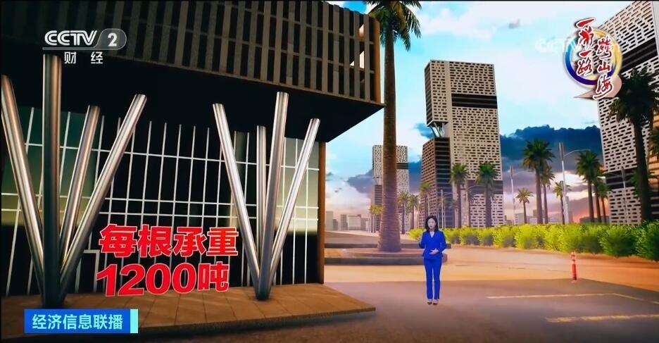 包括標志塔在內(nèi),中國企業(yè)在中央商務區(qū)共承接了20個高層建筑單體及配套市政工程。20棟高樓間,我們還能看見不少這樣的“樹形柱”,四根向上斜伸的柱子,像一個倒立的金字塔。我身邊就是這種樹形柱,每根柱子承受1200噸重量,相當于在上面站立150頭成年大象,受力卻只集中于底部一點,中國團隊歷經(jīng)3個多月的精密計算與人工調(diào)試,讓這個專屬于埃及的設(shè)計成功澆筑,用堅實的技術(shù)托起了這座未來之城。