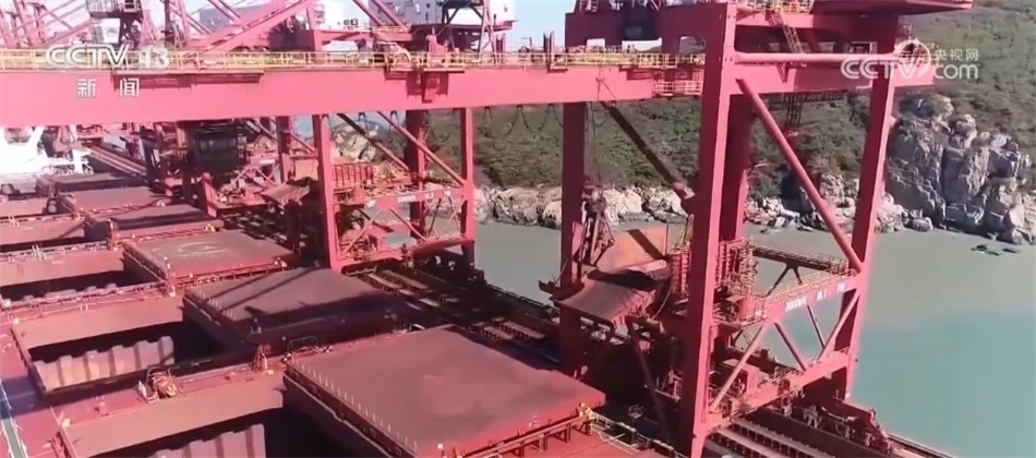 記者來(lái)到寧波舟山港鼠浪湖礦石中轉(zhuǎn)碼頭時(shí),一個(gè)個(gè)抓斗正忙著從巨輪上接卸礦石。今年以來(lái),40萬(wàn)噸礦船是這里的???。作為大宗物資集散地,寧波舟山港承擔(dān)了長(zhǎng)江經(jīng)濟(jì)帶45%的鐵礦石、90%以上的油品中轉(zhuǎn)量。前三季度,寧波舟山港經(jīng)營(yíng)體系內(nèi)鐵礦石的接卸量超過(guò)了1億噸。