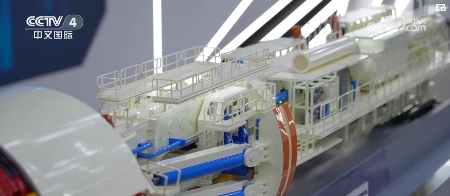 總臺記者 趙鶴:除了應用在相對小型的產(chǎn)線上,在盾構(gòu)機、掘進機這樣的國之重器上,也早已經(jīng)憑借物聯(lián)網(wǎng)技術(shù)進行了智能化的升級。從這臺等比例縮小的硬巖隧道掘進機的模型可以看到,在它的最前方是刀盤,用來進行碾磨巖石作業(yè),在這樣一個和巖石產(chǎn)生激烈碰撞的地方也有傳感器的存在,來感知這些刀具的磨損轉(zhuǎn)速等數(shù)據(jù)信息。