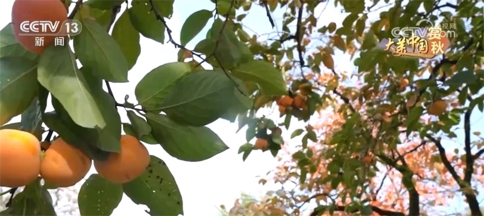 您現(xiàn)在看到的是位于陜西驪山腳下的西安臨潼區(qū)。眼下,這里秋意漸濃,起伏的山巒間,樹樹皆染秋色,不僅染紅了楓葉,也染紅了柿子樹。火紅的柿子像一個個紅燈籠掛滿了枝頭,透著喜氣,這也是臨潼山間特有的秋韻。