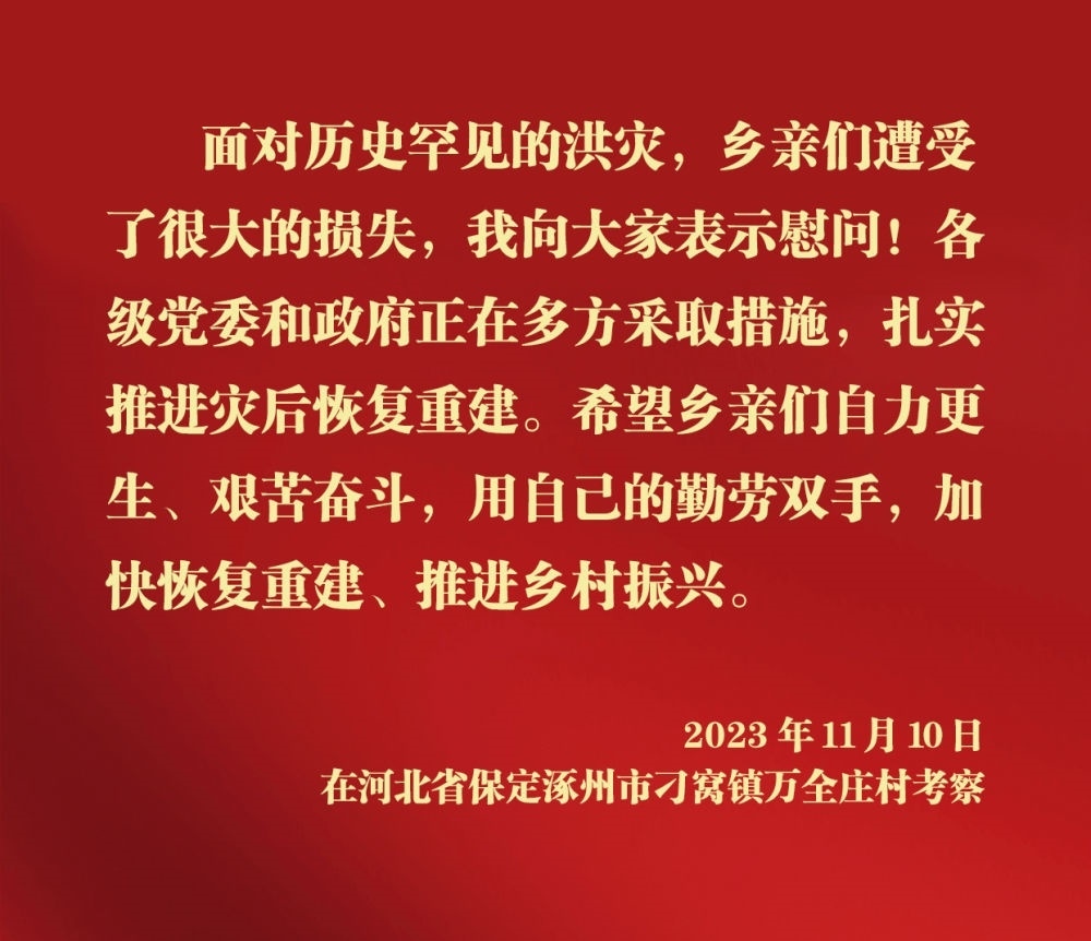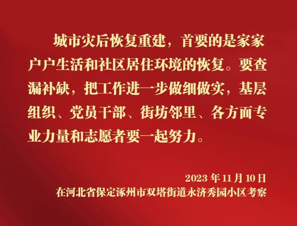 11月10日,中共中央總書記、國家主席、中央軍委主席習(xí)近平在北京、河北考察災(zāi)后恢復(fù)重建工作。他先后來到門頭溝、保定等地,實(shí)地了解災(zāi)后恢復(fù)重建情況。