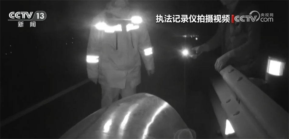 再來看前些天發(fā)生在京臺(tái)高速山東德州段的這一幕。晚上八點(diǎn)多,德州高速交警在轄區(qū)巡查時(shí),發(fā)現(xiàn)在京臺(tái)高速往濟(jì)南方向的這一處內(nèi)側(cè)行車道上,掉落了一個(gè)大型管道,前方不遠(yuǎn)處有一輛大型貨車正停在應(yīng)急車道內(nèi),而貨車駕駛?cè)苏驹谥醒胱o(hù)欄內(nèi),用手電筒提醒過往車輛。由于晚上途經(jīng)的大都是大型車輛,夜間視距較差,情況十分危險(xiǎn),現(xiàn)場交警分工配合,通過多次嘗試終于跑到了遺落物的旁邊進(jìn)行處置。