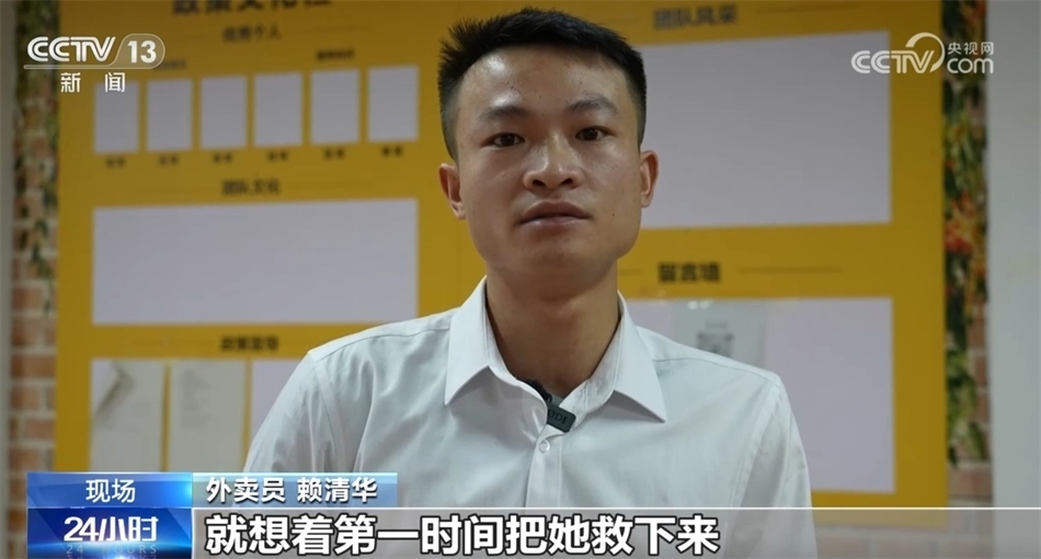 外賣員 賴清華:就想著第一時(shí)間把她救下來(lái),我覺(jué)得換做任何一個(gè)人當(dāng)時(shí)也會(huì)這樣做,伸一把援手。