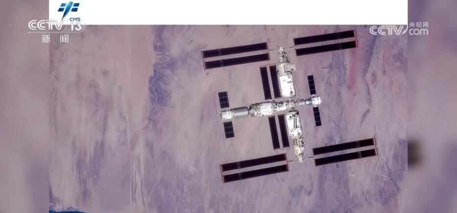 撤離后,神舟十六號乘組在返回地面前,航天員手持高清相機(jī)通過飛船繞飛拍攝了空間站組合體。這是在軌首次獲取的以地球?yàn)楸尘暗闹袊臻g站全貌圖像,也是第一組反映空間站全構(gòu)型的工作照。