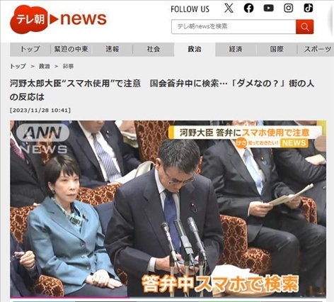 ·據(jù)日媒報(bào)道,27日,日本參議院預(yù)算委員會(huì)公開答辯中,數(shù)字大臣河野太郎在回答問(wèn)題時(shí),拿出手機(jī)試圖查詢資料,被委員長(zhǎng)叫停。