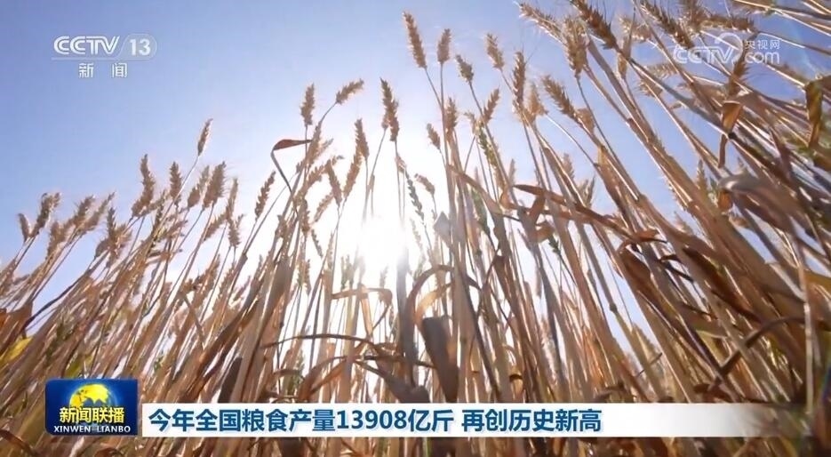 央視網消息(新聞聯播):國家統(tǒng)計局今天(12月11日)發(fā)布全年糧食產量數據,2023年全國糧食總產量達13908.2億斤,再創(chuàng)歷史新高,連續(xù)9年穩(wěn)定在1.3萬億斤以上。