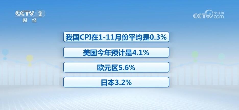 寧吉喆表示,消費(fèi)物價上漲率,也就是通脹率,我國CPI在1—11月份平均是0.3%,美國今年預(yù)計是4.1%,歐元區(qū)5.6%,日本3.2%。