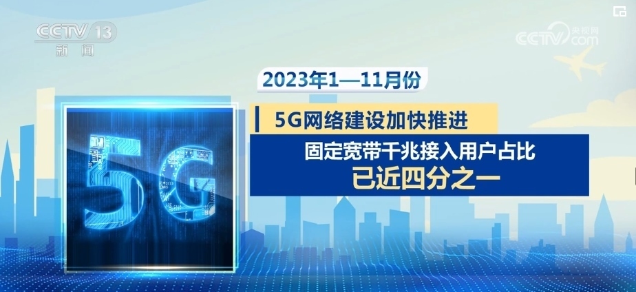 央視網(wǎng)消息:工業(yè)和信息化部數(shù)據(jù)顯示,2023年1—11月份,通信行業(yè)保持平穩(wěn)運行。5G、千兆光網(wǎng)等新型基礎設施建設加快,電信業(yè)務總量較快增長。