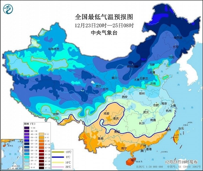 央視網(wǎng)消息:據(jù)中央氣象臺網(wǎng)站消息,中央氣象臺12月23日18時繼續(xù)發(fā)布低溫藍(lán)色預(yù)警:預(yù)計,23日20時至25日08時,江淮、江南、華南以及山東西北部和半島地區(qū)、河北南部和西北部、山西北部、陜西北部等地日最低氣溫較歷史同期偏低5~7℃,其中浙江中部、江西中部等地偏低7℃以上,最低氣溫0℃線將位于貴州南部至華南北部一帶。