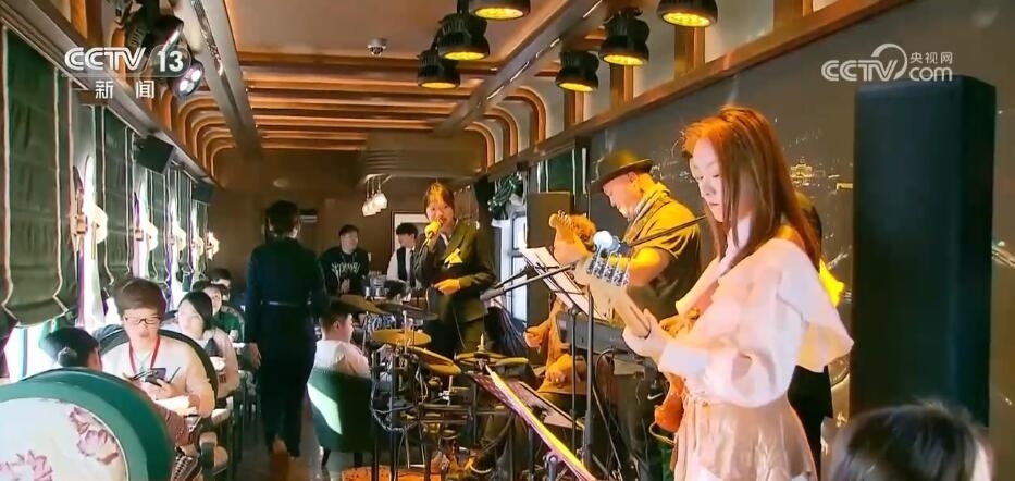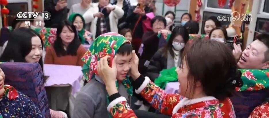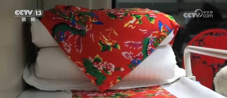 總臺央視記者 楊曜語:一上車,我就被濃濃的東北文化所感染到了,整個車廂都被東北大花的經典配色裝飾著,再加上隨手就能品嘗到的特色美食,坐在床鋪上就感覺一秒鐘“穿越”到農家炕頭。跟著游客,我現在到了一節(jié)互動車廂,這里被布置成“跨年狂歡”的主題場景,在這里游客可以參與剪窗花、包餃子、穿東北大花襖一系列特色活動,現在就有很多游客在這里打卡拍照。
