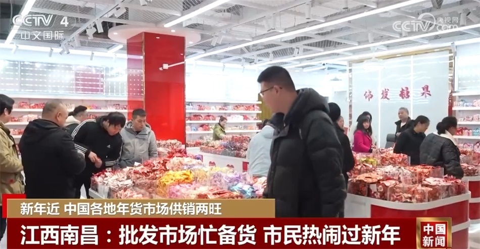 在江西南昌的這個(gè)批發(fā)市場(chǎng),琳瑯滿目的商品擺滿貨架,糖果、干貨也到了銷量最好的時(shí)候。一大早,這里就迎來(lái)了前來(lái)購(gòu)物的市民。