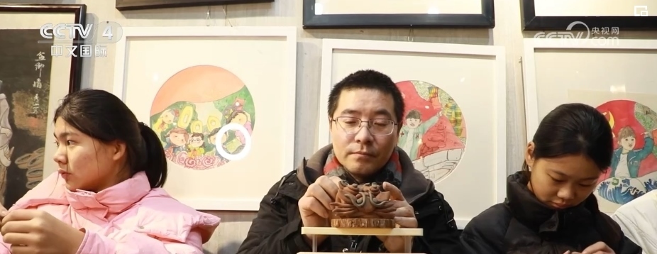 元旦假期,在河南商丘柘城縣“泥人李”世家藝術(shù)館內(nèi),非物質(zhì)文化遺產(chǎn)傳承人通過(guò)和學(xué)生們一起捏制生肖龍主題泥塑作品,歡度元旦佳節(jié)。