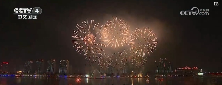 在吉林省吉林市,當?shù)嘏e辦了大型煙花秀,一簇簇寓意著幸福安康、歡樂祥和的禮花騰空而上,點亮了松花江畔的夜空。