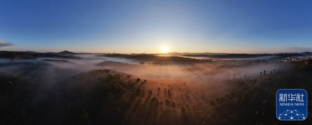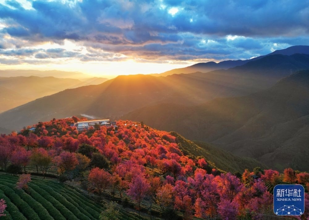 1月1日,位于云南省大理白族自治州南澗彝族自治縣的無(wú)量山櫻花谷迎來(lái)2024年第一縷陽(yáng)光(無(wú)人機(jī)照片)。新華社發(fā)(適志宏 攝)