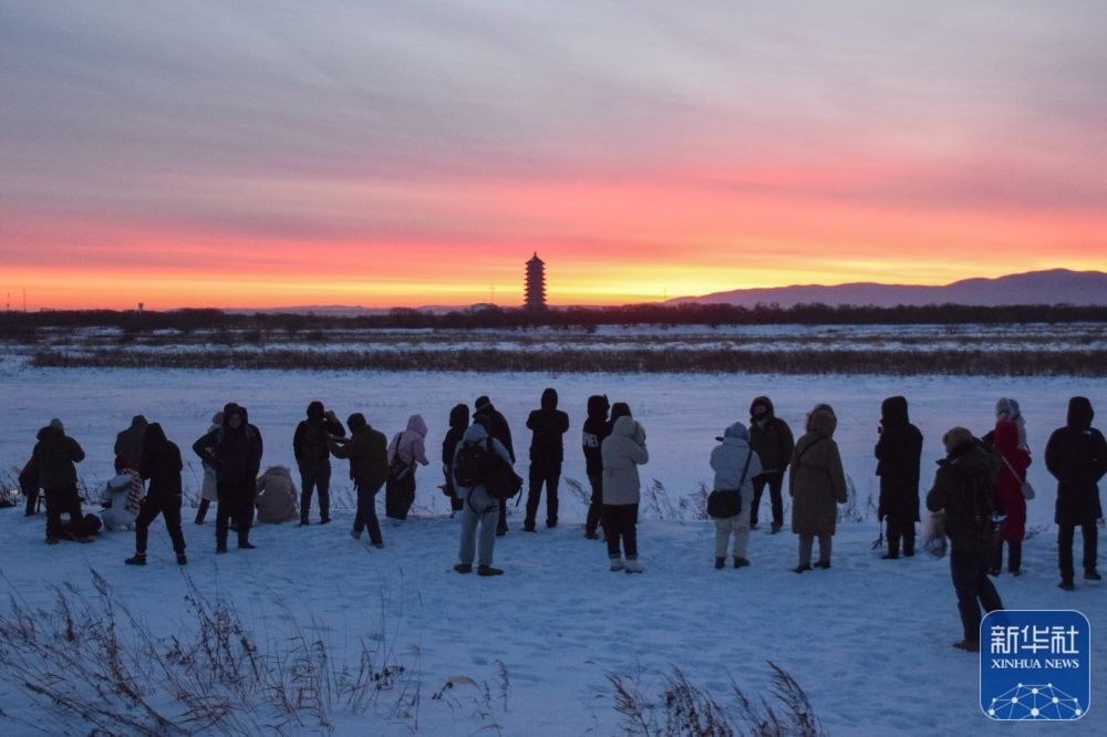 1月1日,游客在黑龍江省撫遠(yuǎn)市黑瞎子島上看日出。新華社發(fā)(官長(zhǎng)青 攝)