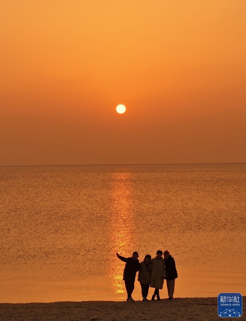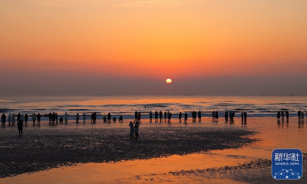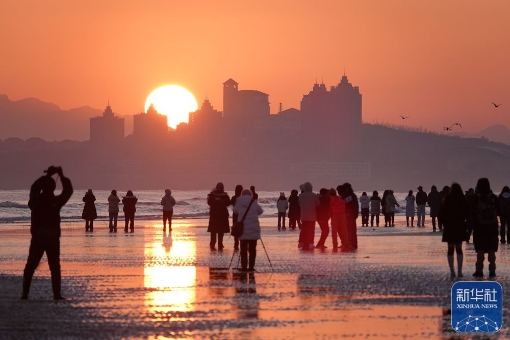 1月1日,市民在河北省秦皇島市北戴河區(qū)淺水灣浴場(chǎng)海灘觀看日出。新華社發(fā)(劉城 攝)