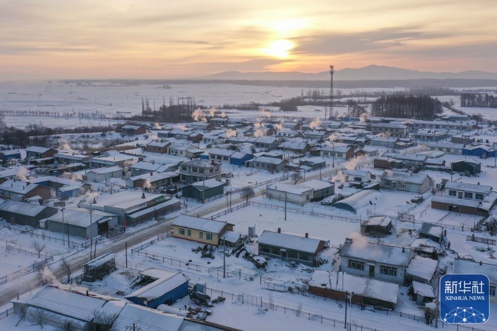這是1月1日拍攝的黑龍江省尚志市老街基鄉(xiāng)龍王廟村日出景觀(無(wú)人機(jī)照片)。新華社發(fā)(宋洋 攝)