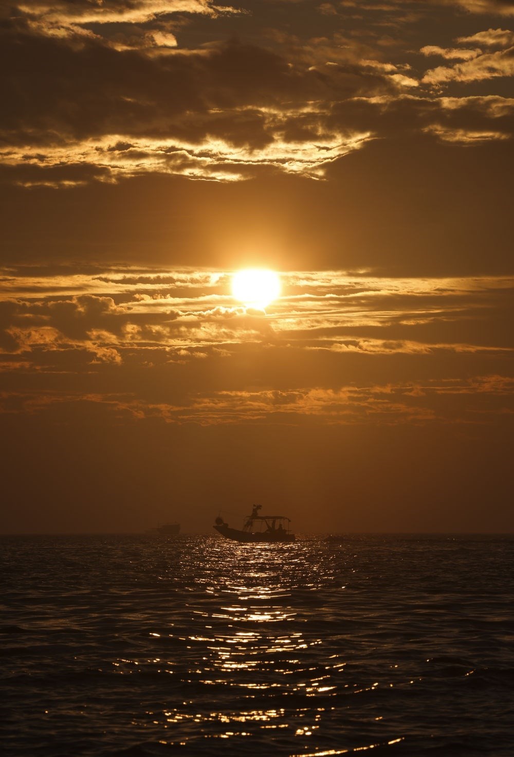 1月1日,一條漁船在新年第一縷晨光中從山東青島膠州灣跨海大橋旁駛過(guò)。新華社記者 李紫恒 攝