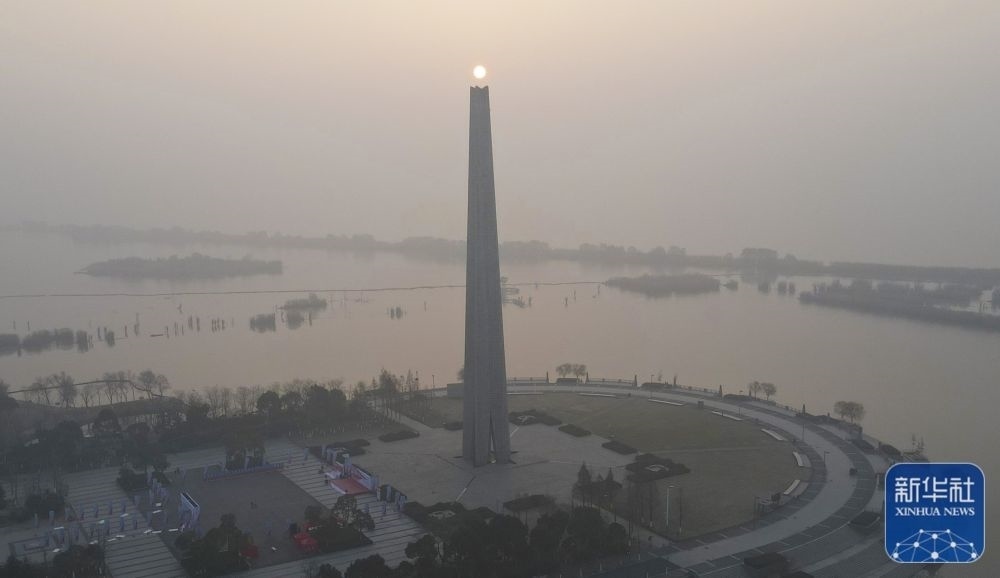 這是1月1日在安徽省合肥市渡江戰(zhàn)役紀(jì)念館附近拍攝的晨光(無(wú)人機(jī)照片)。新華社記者 周牧 攝