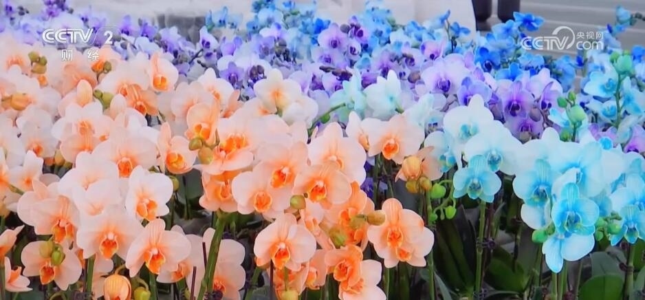為了滿足市場需求,該基地還推出“活體染色”蝴蝶蘭,讓其根莖在生長時(shí)吸收足夠多的天然色素,從而花瓣呈現(xiàn)出藍(lán)色、橙色等各種色彩。