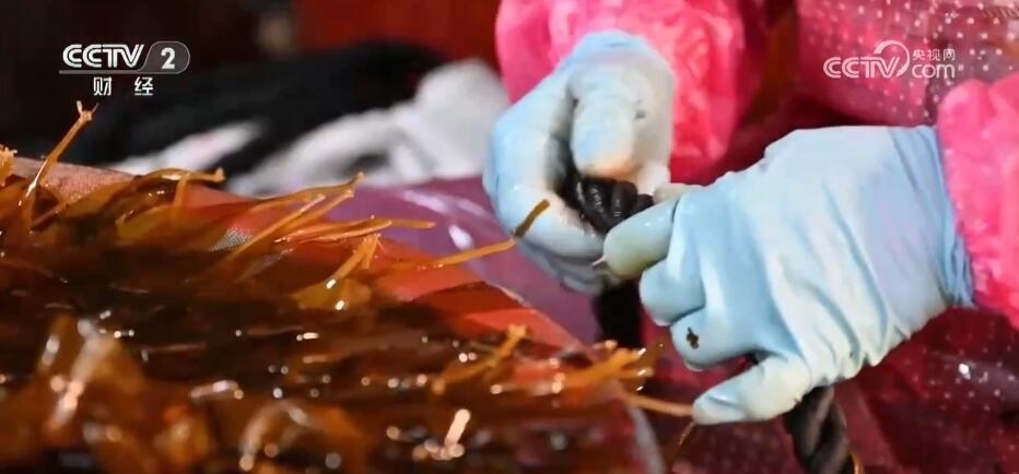 福清市海帶養(yǎng)殖戶 魏賢忠:現(xiàn)在是海帶分苗的黃金期,我們每天早上一點(diǎn)多就起床,趕著這段黃金期(分苗),一天的產(chǎn)量大概1000多條。
