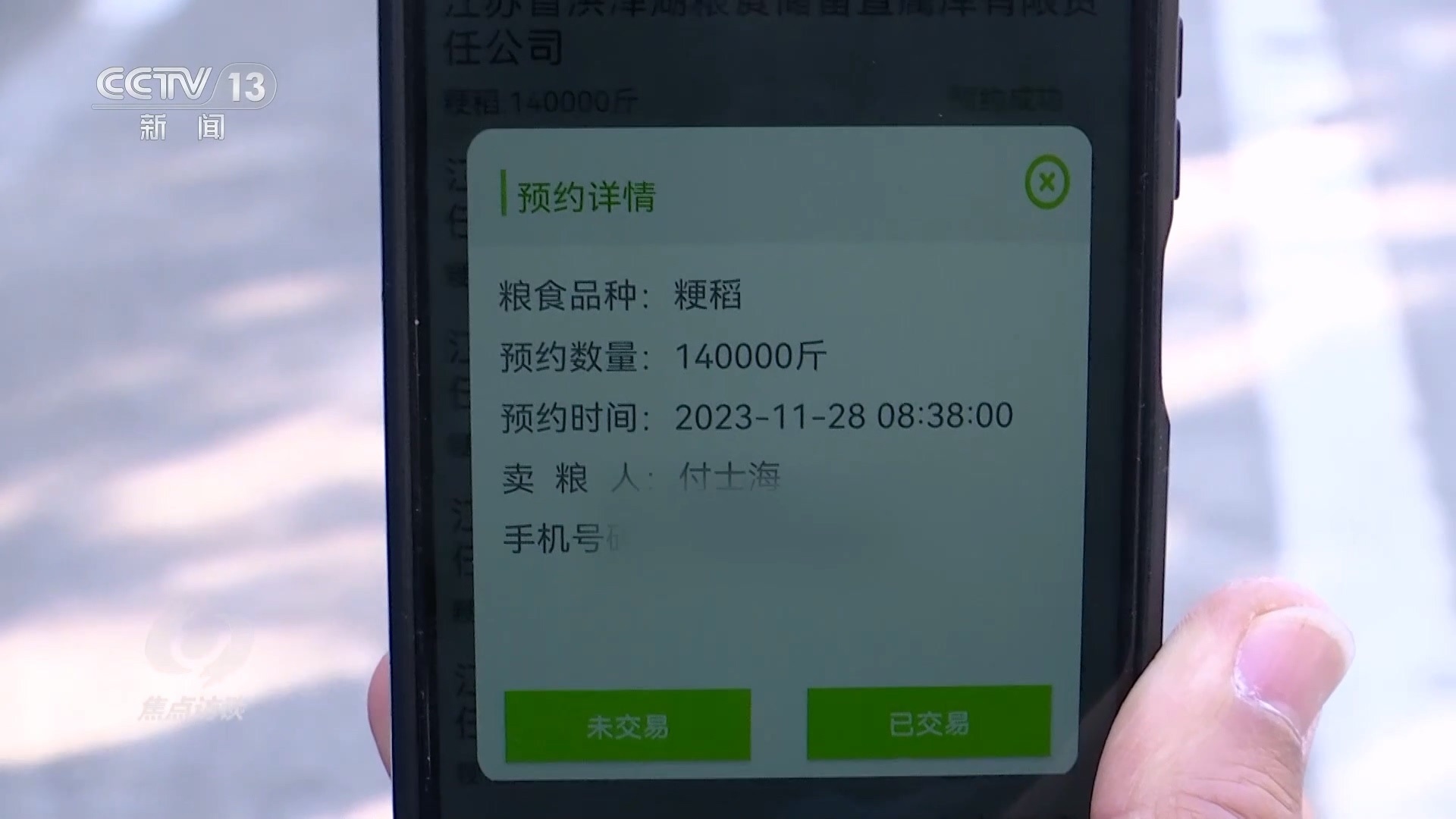 在江蘇省糧食部門研發(fā)的這個(gè)“滿意蘇糧”應(yīng)用程序里,不僅能夠?qū)崟r(shí)查詢收購價(jià)格、糧庫倉容狀態(tài),還能預(yù)約賣糧。通過手機(jī)看到這幾天的價(jià)格比較合適,付士海也準(zhǔn)備將自己的糧食出手了。