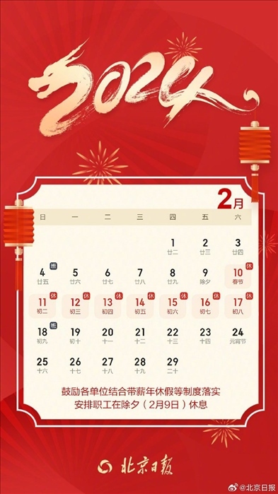 ·北京正式發(fā)布春節(jié)放假安排,鼓勵各單位結合年假等安排除夕休息。