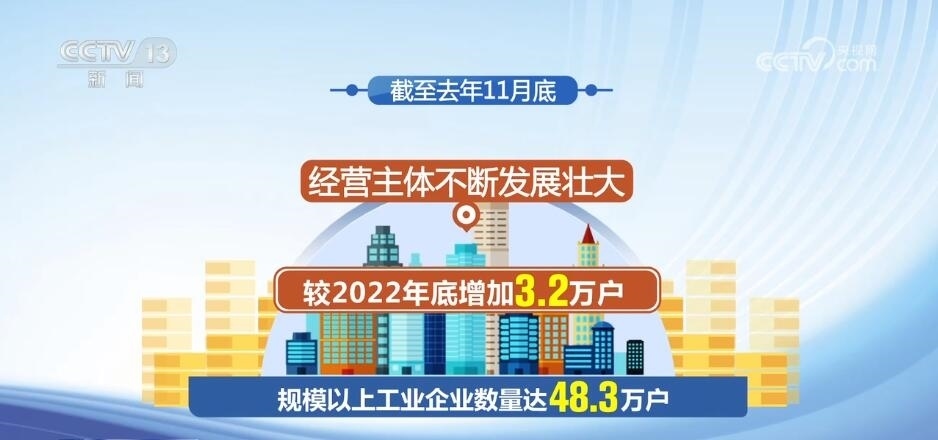 數(shù)據(jù)顯示,截至去年11月底,規(guī)模以上工業(yè)企業(yè)數(shù)量達48.3萬戶,較2022年底增加3.2萬戶,經(jīng)營主體不斷發(fā)展壯大。制造業(yè)PMI生產(chǎn)經(jīng)營活動預期指數(shù)自2023年10月連續(xù)3個月上升,全年指數(shù)均高于臨界點,制造業(yè)企業(yè)對發(fā)展信心穩(wěn)定恢復。