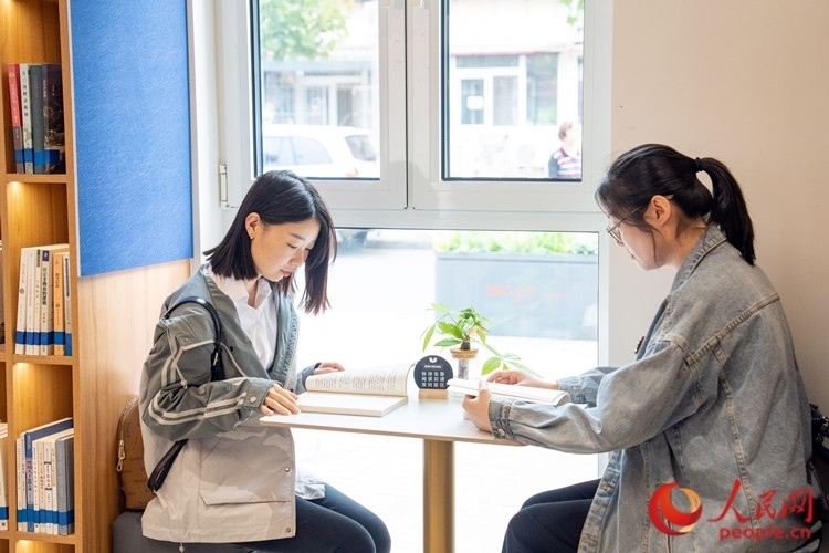 書吧里,兩位年輕的居民在享受安靜的閱讀時光。人民網記者 孫翼飛攝