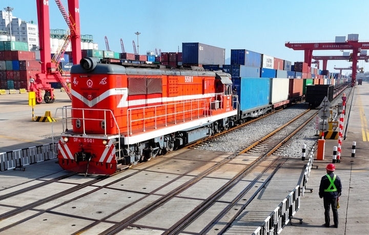 水路大進(jìn)大出,鐵路風(fēng)馳電掣。元旦當(dāng)天,連云港新年開行的首趟中歐班列載著汽車配件、家用電器等,從中哈物流合作基地出發(fā),駛往中亞國家;同日,南通海安物流基地內(nèi),一列滿載貨物的班列鳴笛啟程開往越南河內(nèi)。有去有回,不久之后,“鋼鐵駝隊(duì)”會把來自歐洲、中亞和東南亞的機(jī)械、木材等運(yùn)回中國,開啟新一輪國際循環(huán)。