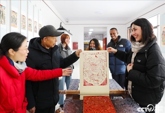 1月27日,近30名留學生走進山東省濰坊高密市姜莊鎮(zhèn),體驗泥塑、撲灰年畫、木版年畫、剪紙等非遺民俗文化項目,零距離感受中國傳統(tǒng)文化魅力,體驗中國年味。?