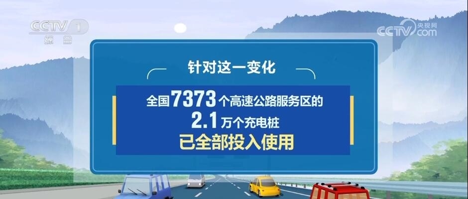 今年公路出行還有一個(gè)新變化,就是在小客車出行當(dāng)中,新能源車輛占比增多。針對(duì)這一變化,目前,全國(guó)7373個(gè)高速公路服務(wù)區(qū)的2.1萬(wàn)個(gè)充電樁已全部投入使用。